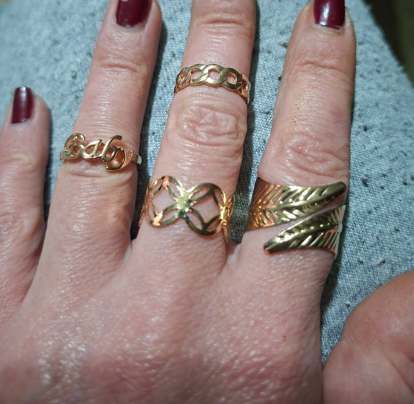 Parlak altın renkte, bohem tarzda kadın yüzükleri.Her biri 60 liradır, beğendiğinize satış açarız