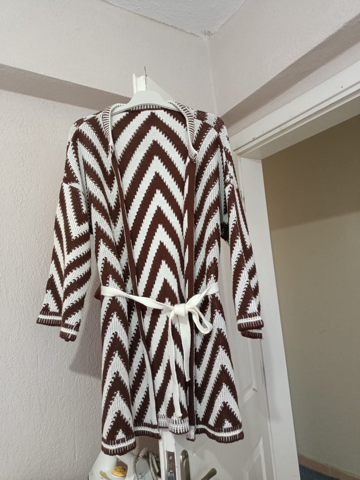 Bohem tarzda, kahverengi ve zebra desenli Belden bağlamalı, yumuşak ve rahat kumaşlı.