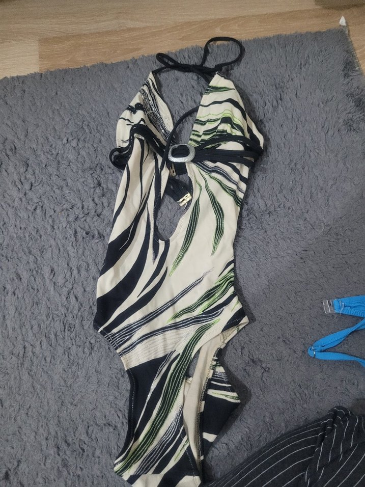 Bohem Zebra Desenli Uzun Askılı Mayo