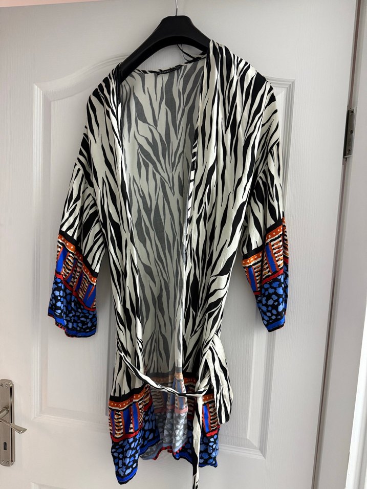 Bohem Zebra Desenli Uzun Kollu Kadın Kimono