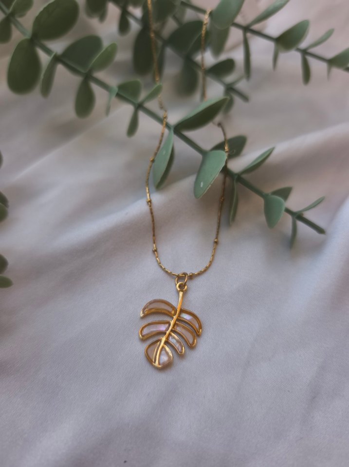 Altın renginde, detaylı zincirli ve yaprak figürlü bohem midi kolye. Minimalist ve retro tarzda, günlük kullanıma uygun.