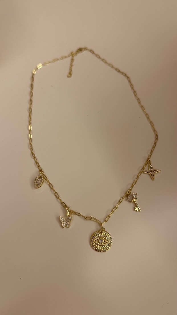 Bohem Zincir Detaylı Altın Renk Kolye
