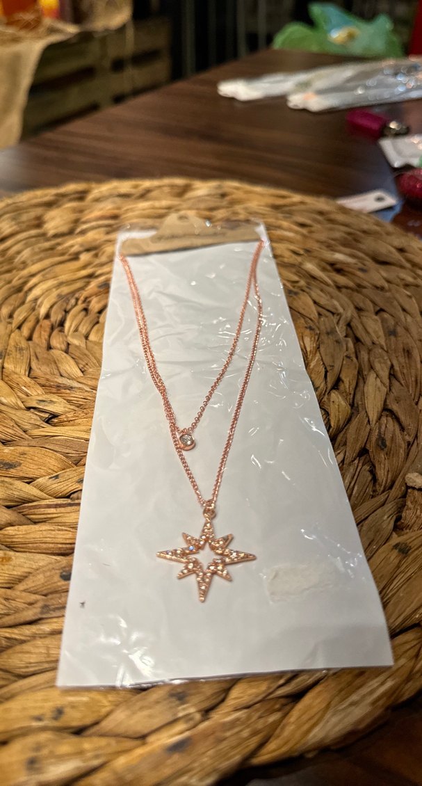 Bohem tarzda, zincir detaylı ve işlemeli yıldız figürlü altın renkli midi uzunlukta kolye. Günlük kullanıma uygundur. ✨