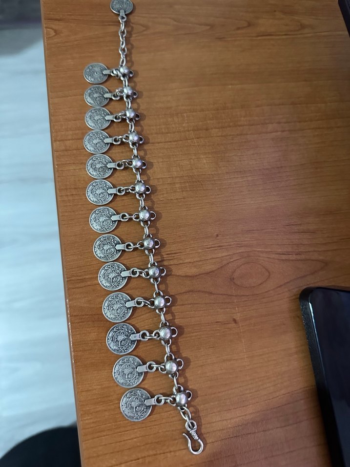 Bohem tarzda, zincir detaylı, bej ve gri tonlarda kadın bileklik. Günlük kullanıma uygun. #halhal#mavi#zara