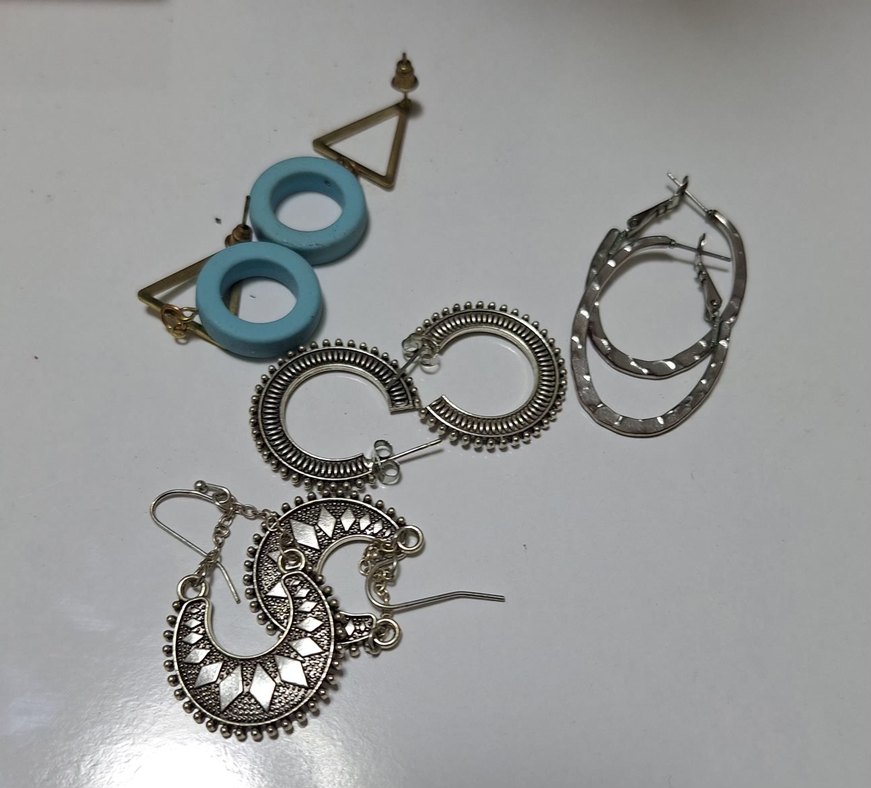 Gri ve turkuaz renklerde, zincir detaylı, desenli kısa bohem küpeler, günlük kullanıma uygun. Stradivarius markadır. Hiç kullanılmadı.