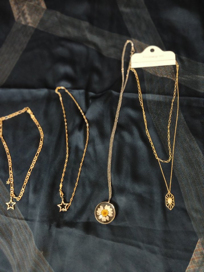 Günlük kullanıma uygun, zincir detaylı ve işlemeli uçlu altın renkli bohem kolyeler. Normal uzunlukta, minimalist tarzda. ürünlerin hiç bir kusuru yok