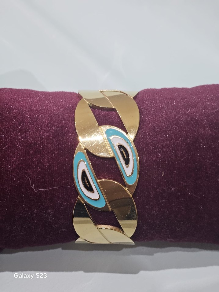 Bohem tarzda, zincir detaylı ve mor yılan desenli renkli kadın bilekliği, günlük kullanım için uygun.