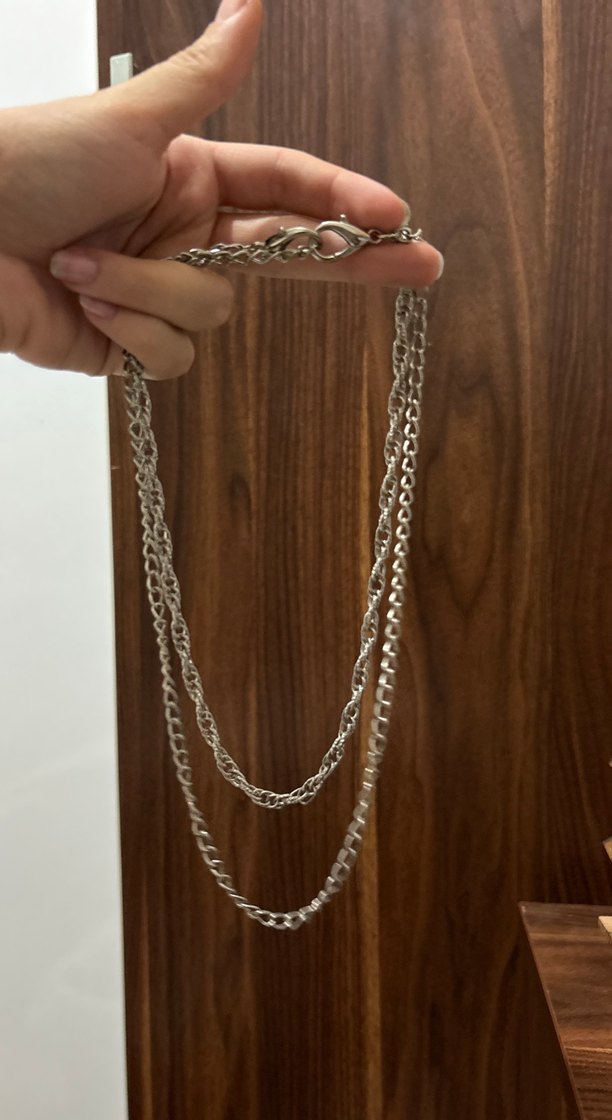 Bohem tarzı, zincir detaylı, gri ve bej renk tonlarında kadın el zinciri. Minimalist ve desensiz tasarımıyla günlük kullanıma uygundur. ✨