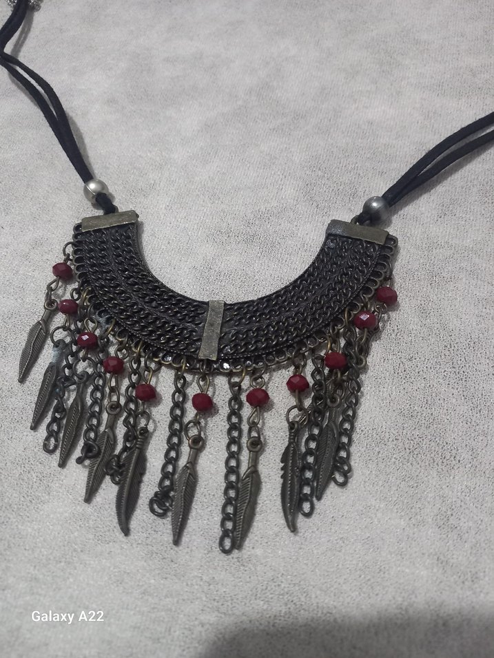 Bohem Zincir Detaylı Siyah Uzun Kolye