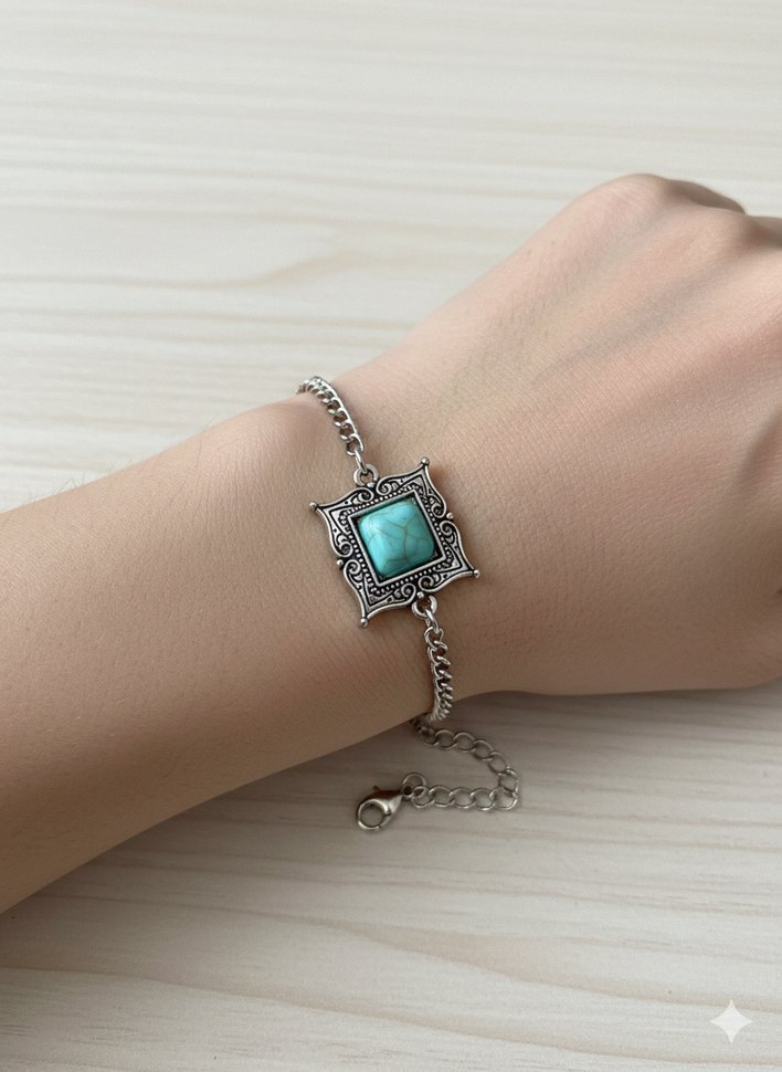 Bohem Zincir Detaylı Turkuaz Bileklik