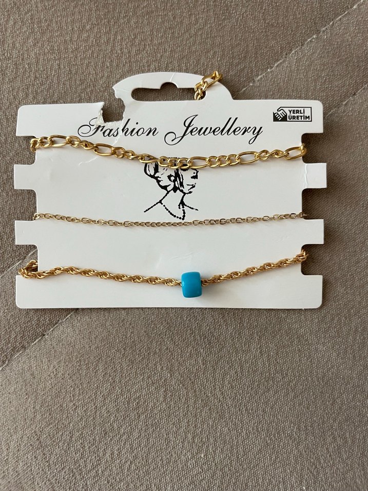 Bohem tarzda zincir detaylı, turkuaz boncuklu kadın el zinciri. Minimalist ve retro tasarım, günlük kullanıma uygun.