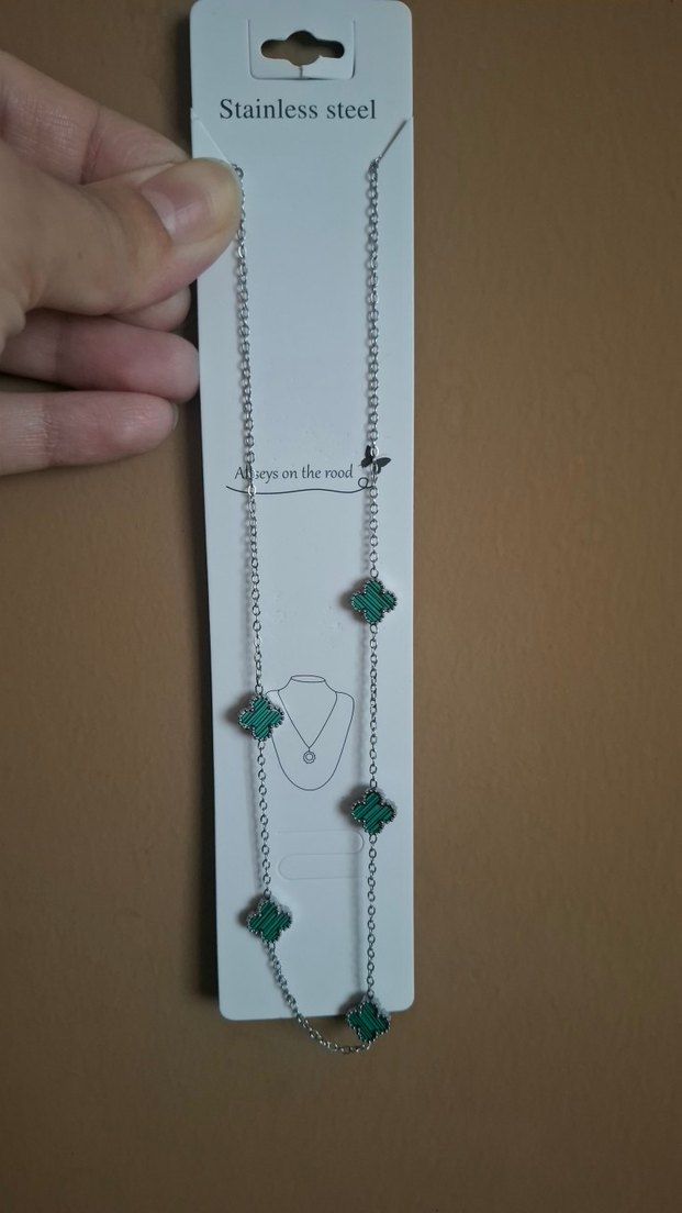 Bohem tarzda, zincir detaylı ve koyu turkuaz baskılı figürlere sahip, günlük kullanım için minimalist ve retro görünümlü midi kolye. ✨