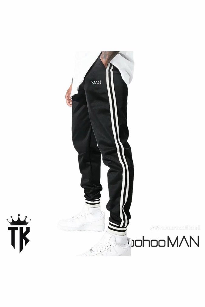 BohooMAN Siyah Çizgili Erkek Eşofman Altı