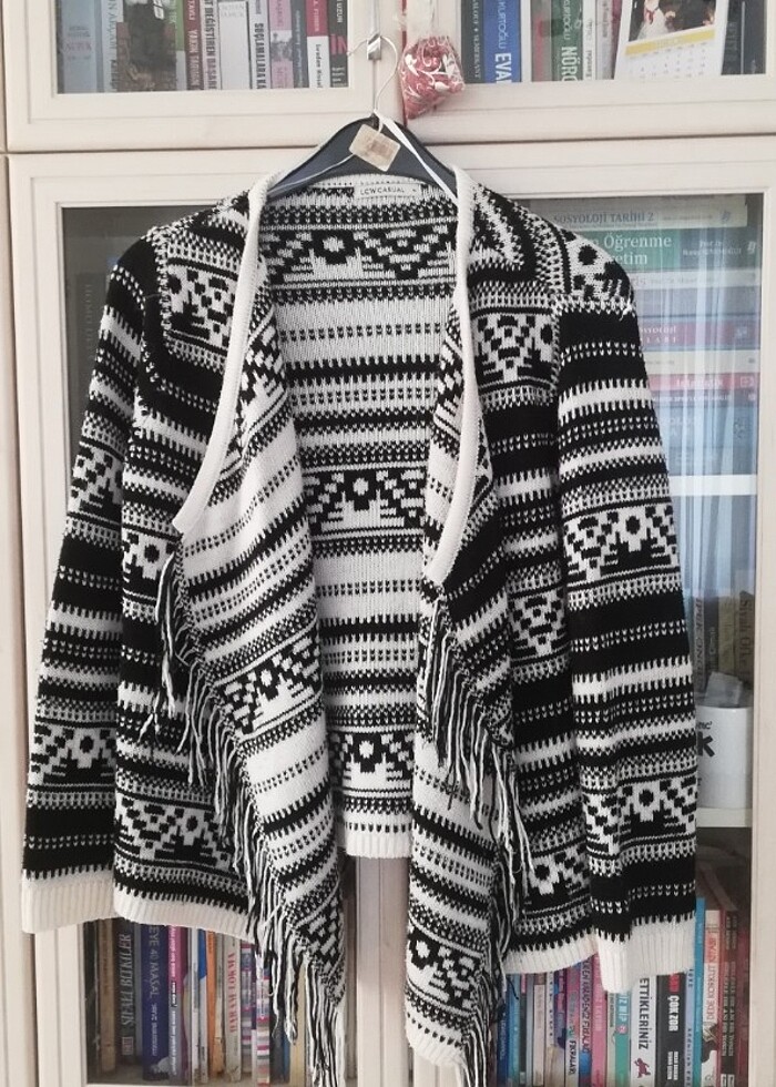 1 - 2 defa giydim. Lcw ürünü m beden siyah beyaz etnik desenli Bol: 70 cm kol 65 cm göğüs 110