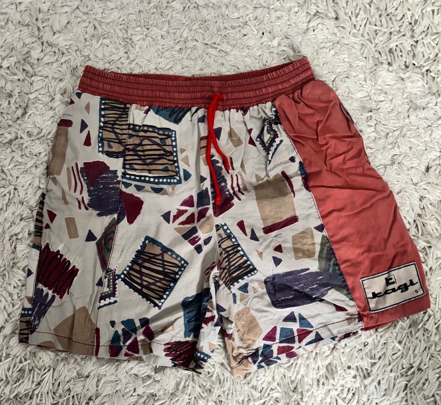 Bağcıklı ve düğmeli detaylı, bol kesim erkek şort. Tie-dye ve geometrik desenlere sahip, günlük kullanıma uygun.