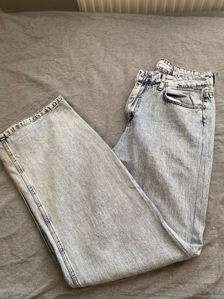 Gri midi boy, bol kesim, desen içermeyen denim kadın jean. Rahat ve gündelik sokak stili için ideal, zahmetsiz şıklık sunar.