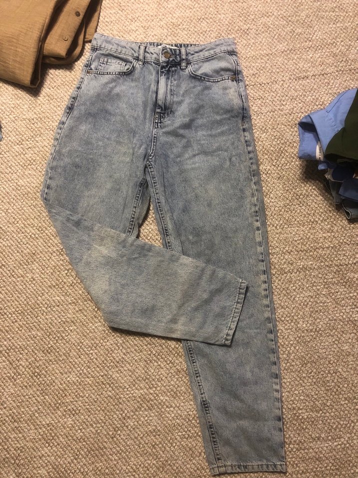 bol kesim denim kot pantolon. Günlük kullanıma uygun, desen içermeyen rahat ve şık bir tasarım.
