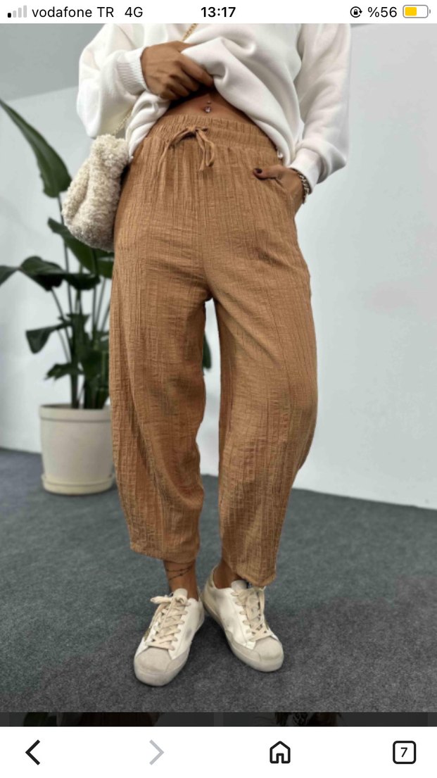 açık kahverengi kadın pantolon. Günlük kullanıma uygun, rahat ve uzun boylu tasarım.