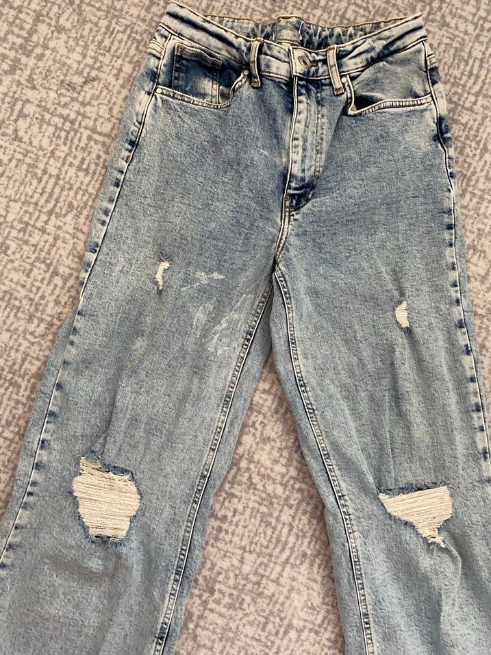 Yırtık detaylı, bol kesim kot pantolon. Önünde renk açılması var fakat sırıtmıyor, eskitme gibi duruyor. Boynerden alındı onlu markasına ait. Mesaj atarsanız detaylı ölçülerini paylaşabilirim.