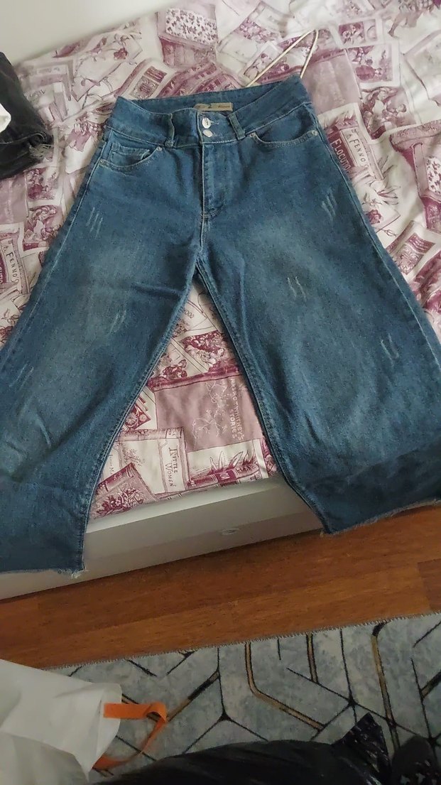 bol kesim midi uzunlukta, desen içermeyen denim kot pantolon. Rahat ve günlük kullanıma uygun, zahmetsiz şıklık sunar.