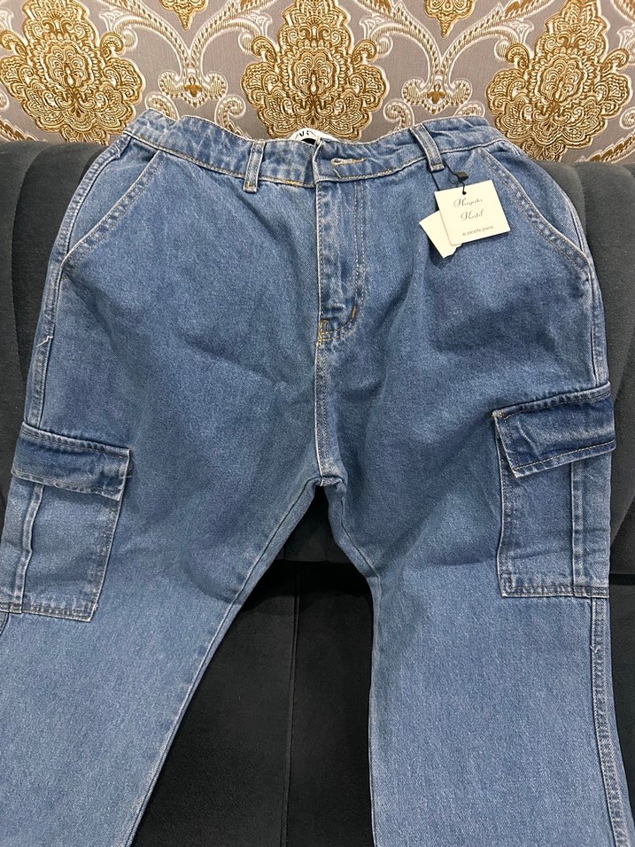 Bel kemerli, bol kesim midi kot pantolon, yan cepleriyle rahat ve gündelik sokak stili için uygundur.