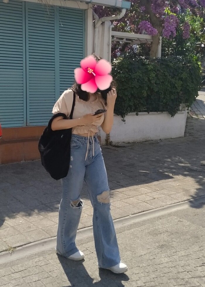 Bol kesim yırtık kot