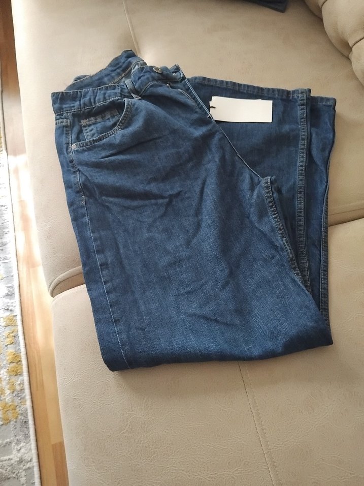 Mavi kot kumaştan, günlük rahat kullanıma uygun.Sifirdir etiketli büyük geldiği için kullanılmadı 38 40 beden olur paca uzunluğu 103
