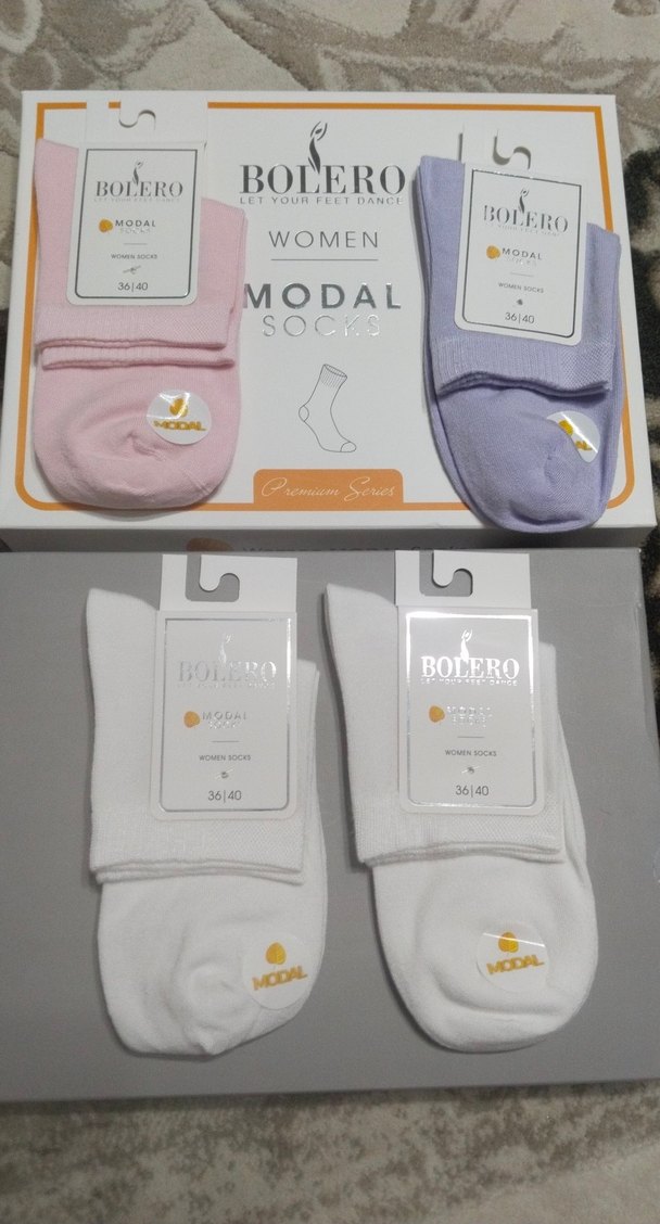 Bolero kadın modal çorap seti, pastel renklerde ve beyaz nakışlı çiftlerden oluşur, yumuşak pamuklu kumaştan üretilmiştir. 4 lu set