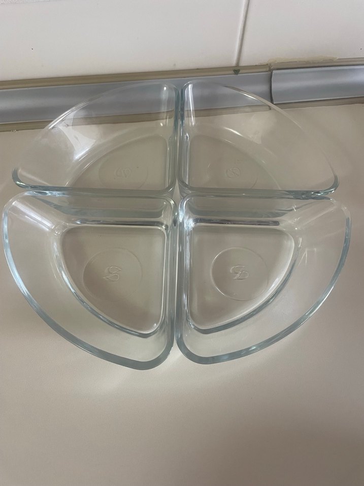 Dört bölmeli, beyaz cam servis tabağı. Modern tarzıyla sofranıza şıklık katar. ️