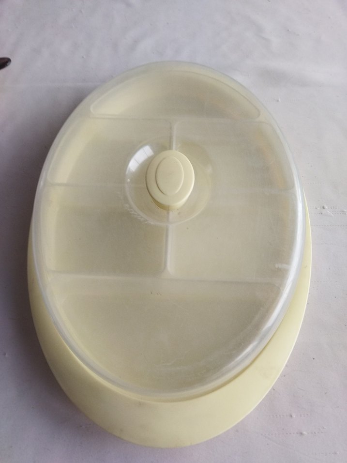 sarı renkte 6 parçadan oluşan az kullanilmiş kapaklı kapağın yuvarlak ucunda bir çizik var ama çatlak degil