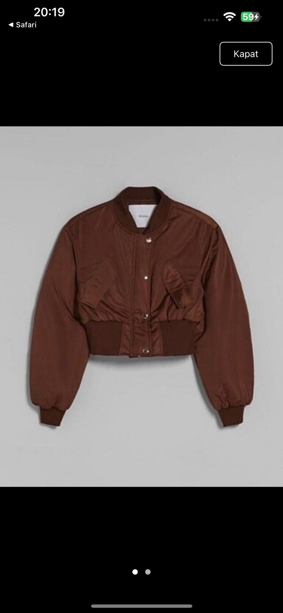 bershka bomber ceket kahverengi bel detaylı kolunda da detay var