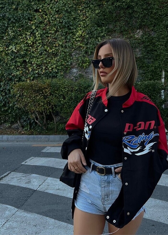 SATILDI ! Siyah snap-on racing bomber ceket s-m-l uyumlu oversize modeldir sadece bir iki kez giyildi, çok iyi durumda