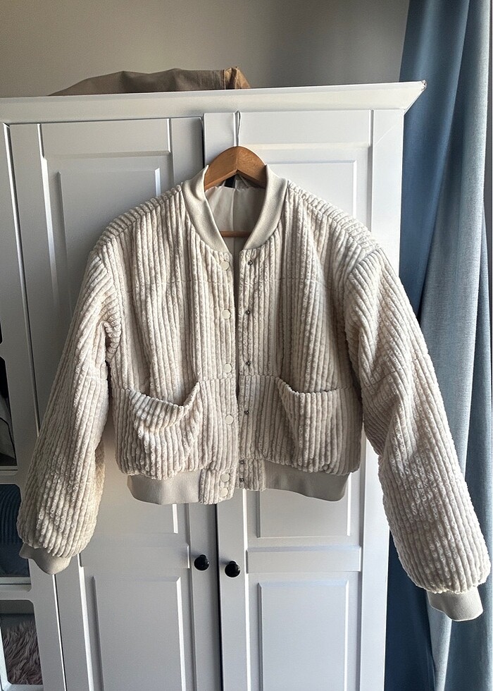 Yünlü krem rengi bomber ceket
