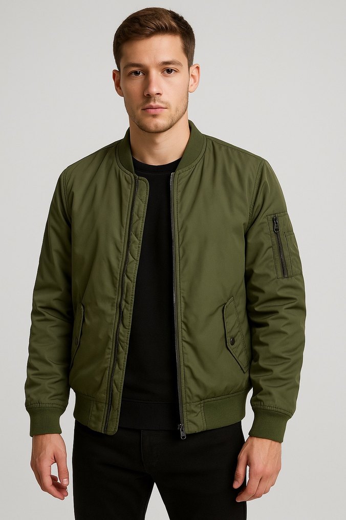 uzun kollu, fermuarlı ve bol kesim bomber ceket. Sokak stiline uygun, günlük kullanım için ideal.