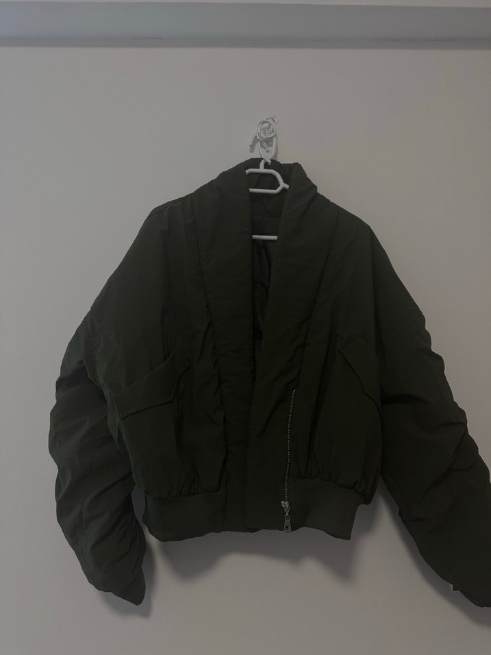 rengi koyu yeşil iki kere kullandım hiçbir sorunu yok içi astarlı S-M uyumlu