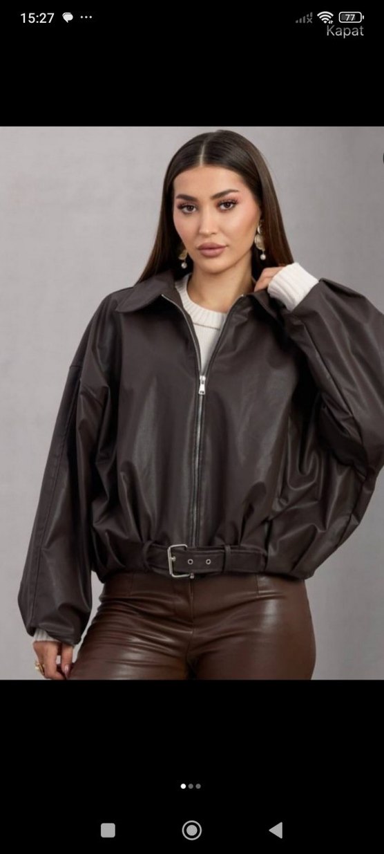 Bomber deri ceket kemerli