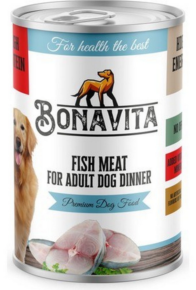 Bonavita markalı, yetişkin köpekler için balıklı konserve mama. Sağlık için kaliteli ve dengeli bir besin sunar. 12 adettir