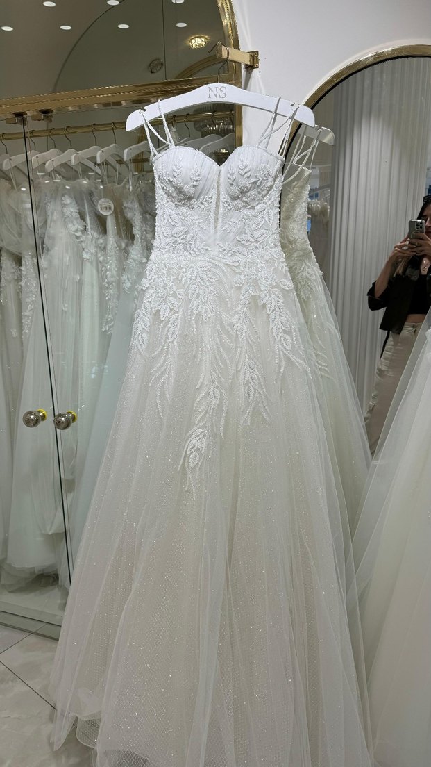 ince boncuk askılı ve işlemeli detaylarla uzun, dökümlü etek üzerine oturan modern klasik tarzda tasarlanmıştır. Özel tasarım gelinlikçiden 55 bin TL ye alındı Yeni sezon 2025 gelinliğidir. Tülünde ki detaylar bile sıradanlıktan uzaktır.
