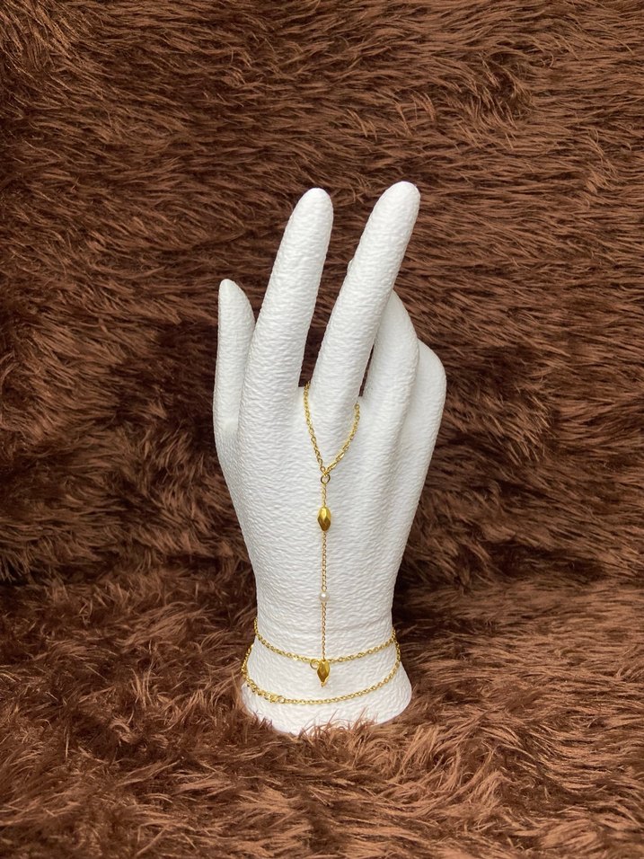 Boncuk Detaylı Altın Rengi Kadın El Zinciri