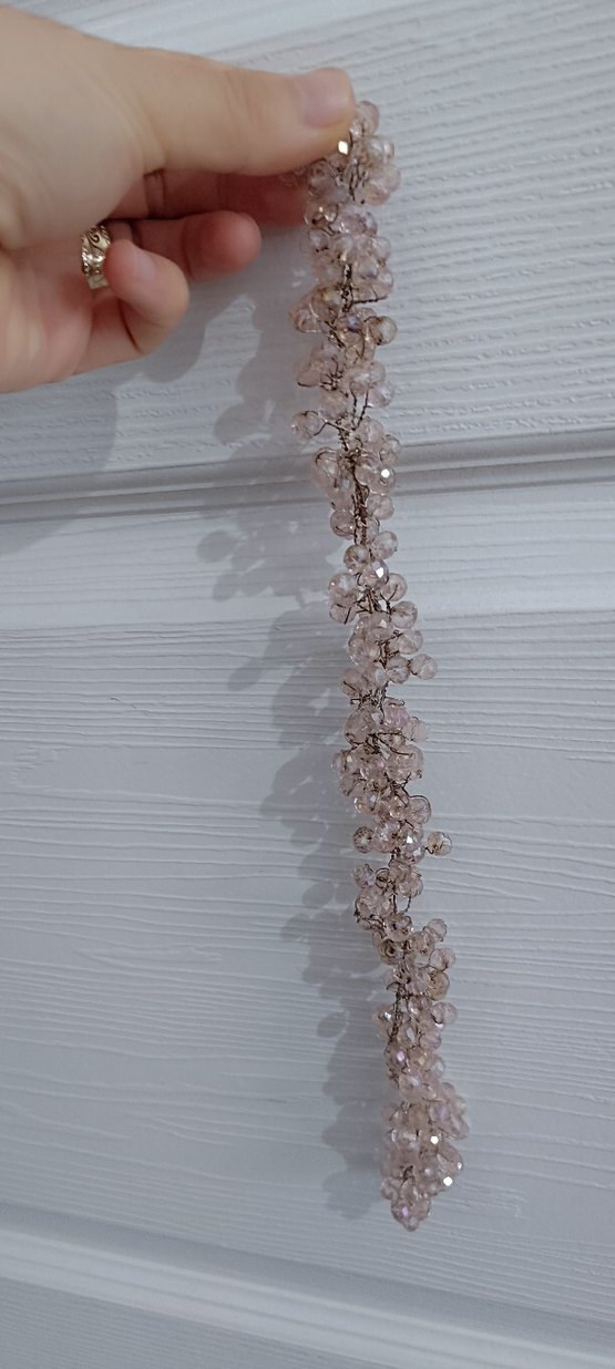 Boncuklu, bej renkli, triko malzemeden yapılmış bohem ve gösterişli tarzda saç aksesuarı. Gri tonlarıyla retro ve hippie görünümlere uyum sağlar.
