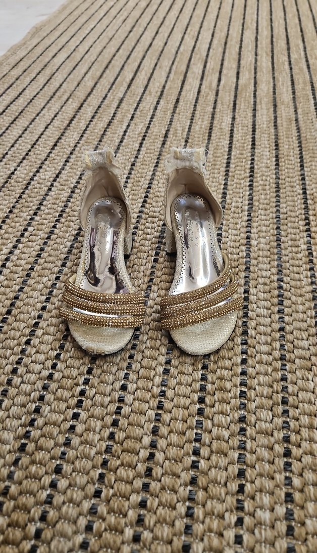 Boncuk Detaylı Bej Dolgu Topuklu Sandalet