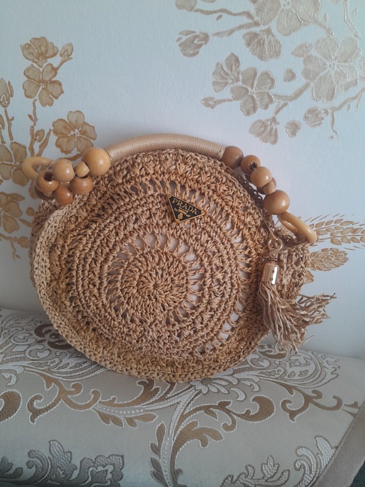 Boncuk Detaylı Bej Örgü Bohem Çanta