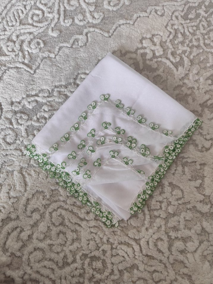 Beyaz renkte, yeşil çiçek işlemeli boncuk detaylara sahip, yumuşak sentetik kumaştan kadın şalıdır. Mütevazı ve bohem tarzlara uygundur.
