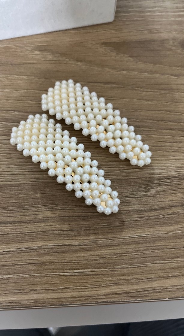 Boncuk detaylı, örgü kumaş tabanlı beyaz saç tokaları, minimal ve bohem tarzıyla retro ve hippie görünüme uygundur.