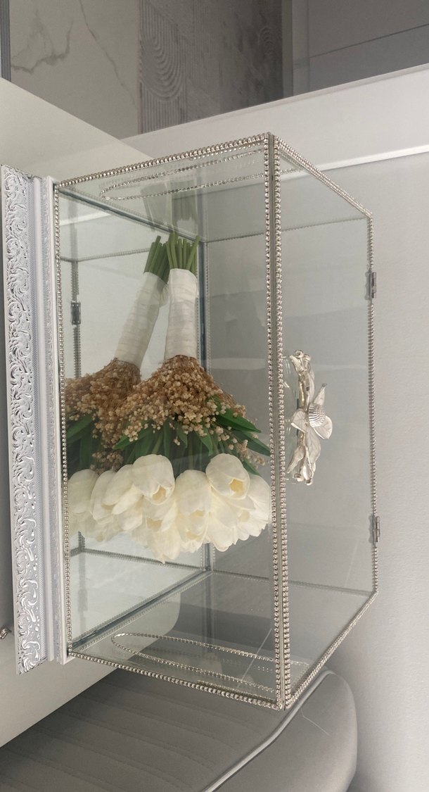 Boncuk Detaylı Beyaz Modern Klasik Gelin Buketi Kutusu