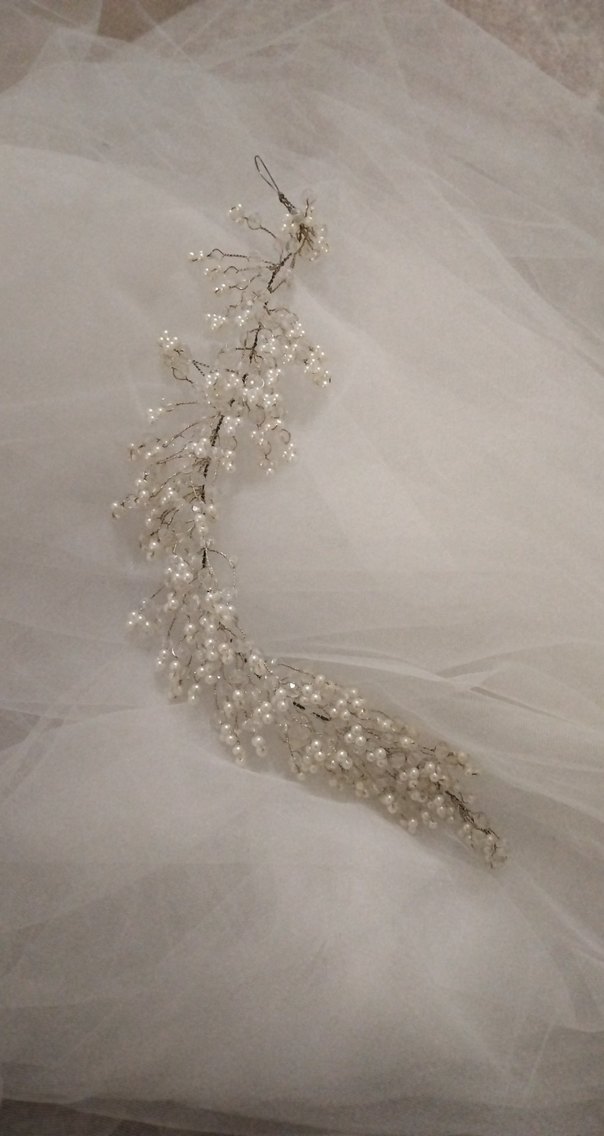 Bu beyaz pamuk saç aksesuarı, boncuk detaylarıyla minimalist ve bohem tarzda, trend belirleyiciler ve avangard modaseverler için uygundur.