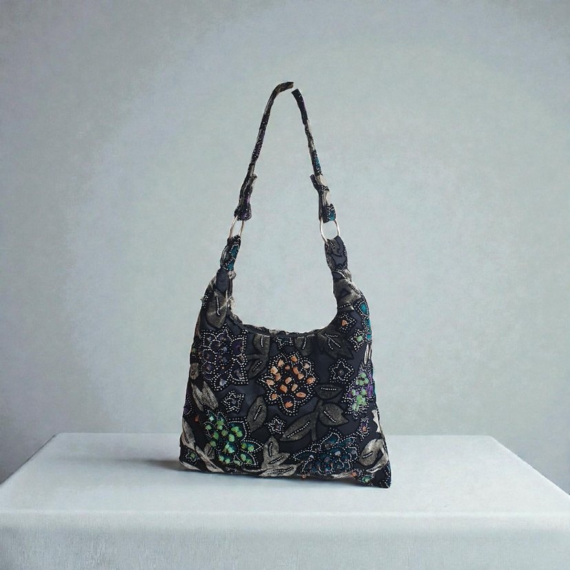 Şık ve özgün tasarıma sahip siyah kadife kumaş çanta. Üzeri boncuk işlemelidir, hiç kullanılmamıştır. Renk: Siyah (mor–yeşil tonlu boncuk detaylı) Kumaş: Kadife ve Tül Detay: El işçiliği görünümlü boncuk işlemeler Sap: Omuz askılı İç kısım: 1 adet fermuarlı göz Durum: Sıfır / kullanılmamış Günlük kombinlerde ve özel davetlerde rahatlıkla kullanılabilir. Fotoğraflar ürüne aittir. Kargo yapılır. Sorular için mesaj atabilirsiniz. #kadifeçanta #boncukişlemeli #siyahçanta #omuzçantası #elişçiliği #kumaşçanta #sıfırürün #şıkçanta