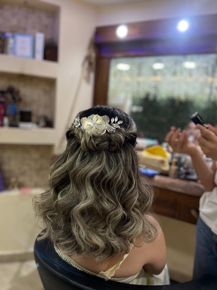 Boncuk işlemeli, çok renkli cam çiçeklerden oluşan, çağdaş tarzda saç tokası. Trend belirleyiciler için şık ve gösterişli bir aksesuar.