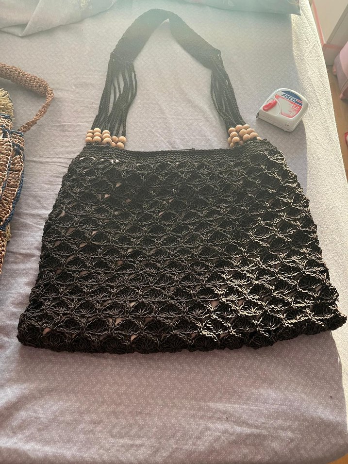 Zara model Boncuk detaylı, kahverengi kağıt ip örgü kadın çantasıdır. Bohem tarzıyla günlük kullanıma uygundur. sipariş üzerine