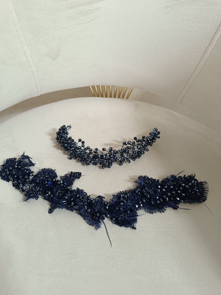 iki adet lacivert saç, türban aksesuarı üstteki kullanıldı bir kere alttaki kullanılmadı. tek tek de alabilirsiniz msj da belirtin